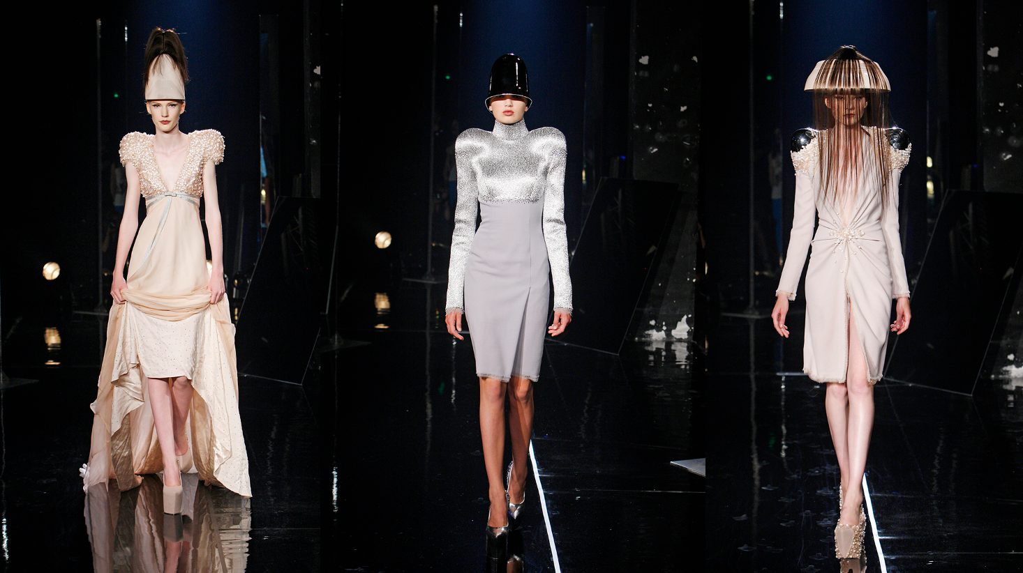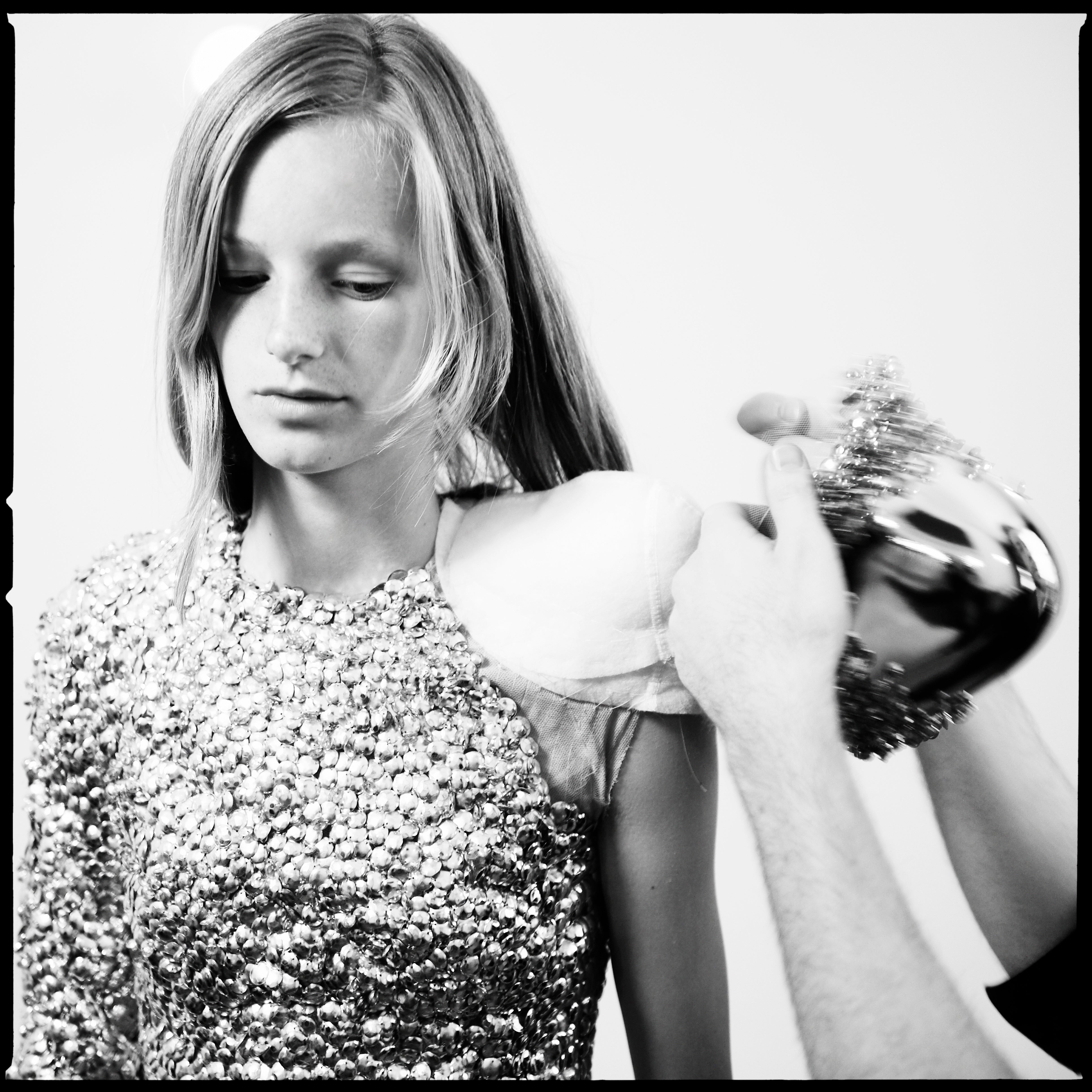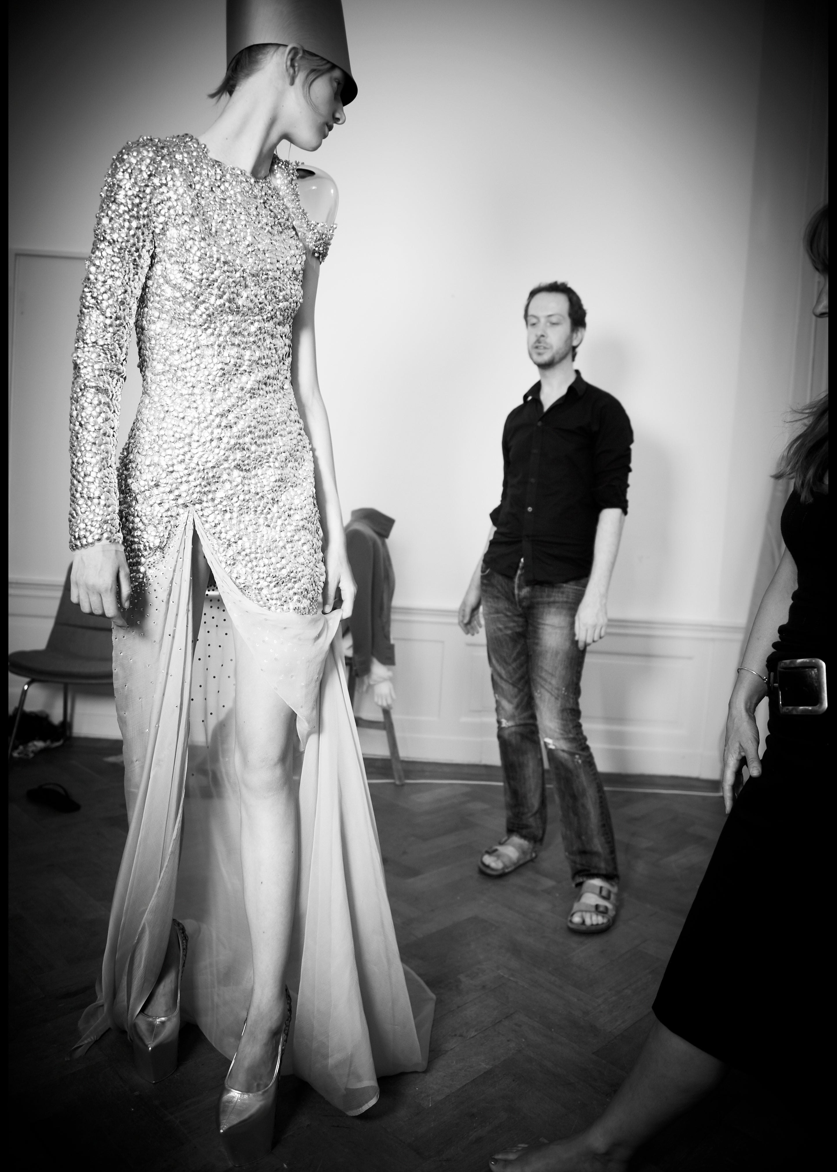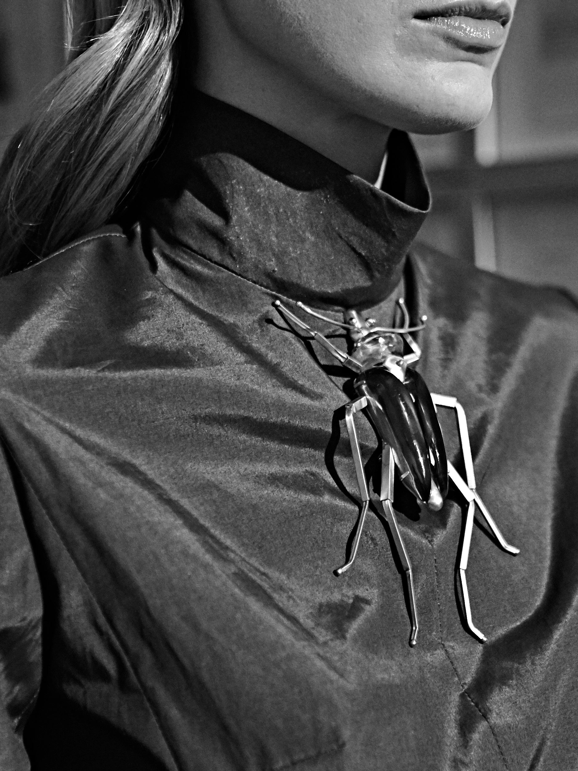 Inspired by a 1950s pose where the woman’s shoulders were pushed forward, Jan became fascinated with highlighting the shoulders rather than the usual focus on the bust or hips. For Reflections, he emphasized the shoulders using a range of techniques, from soft, curved shapes to sharper, pointier ones.