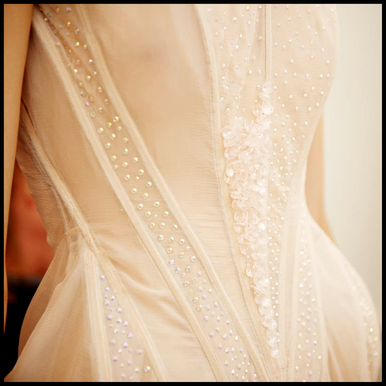 The beauty of JANTAMINIAU gowns reveals itself up close, with each detail and technique reflecting the intentionality behind the design. These elements embody the genuine spirit of the piece, capturing the essence of Jan's boundless imagination. Beauty is expressed through exquisite finishes and meticulously handcrafted details.