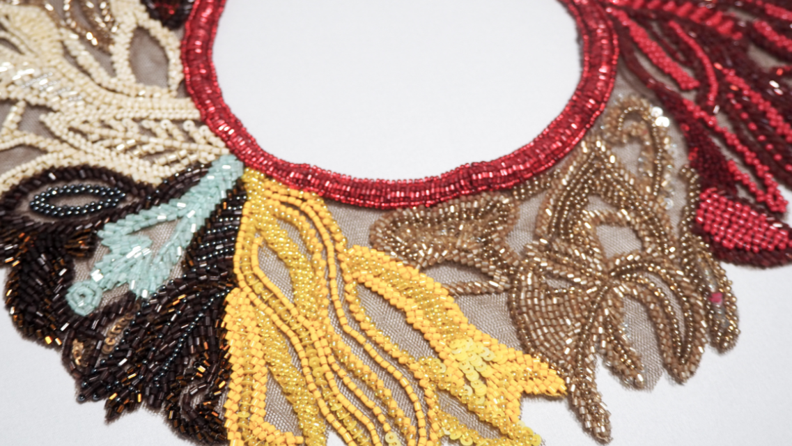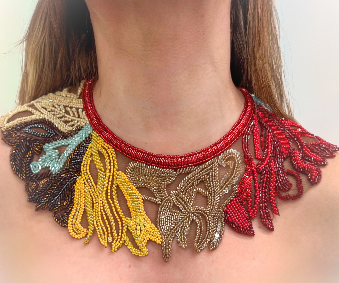 Hand-Embroidered Neck Piece with Beaded Botanical Motifs
